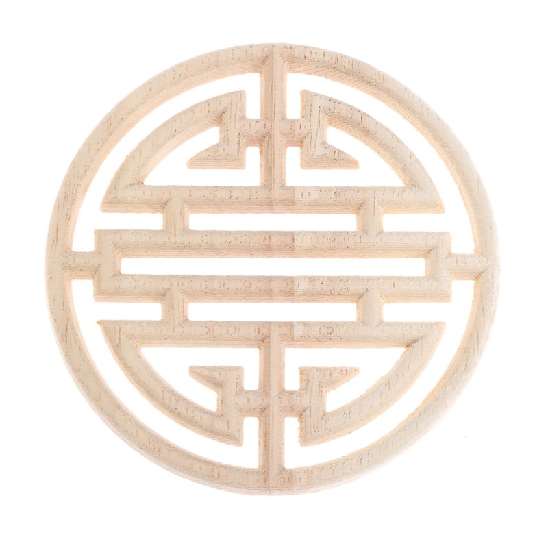 MUXSAM 2Pcs Round Appliques for Furniture Door Cabinet, 10cm/3.94", Retro Hollow Pattern Wood Carved Onlay Wall Bed Center Decal Pattern Decoration