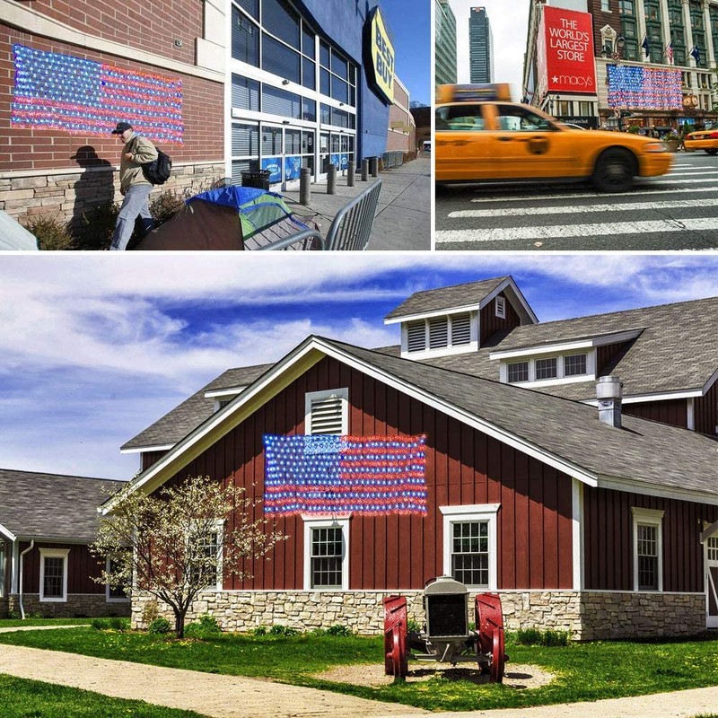 - 【Waterproof 】IP44 Waterproof,to withstand light rain or water spills for indoor and outdoor use.At Night, when you hanging the string light on wall, pond, yard, home, porch, fence etc.Your neighbors Will be very surprised to see this light up american flag.