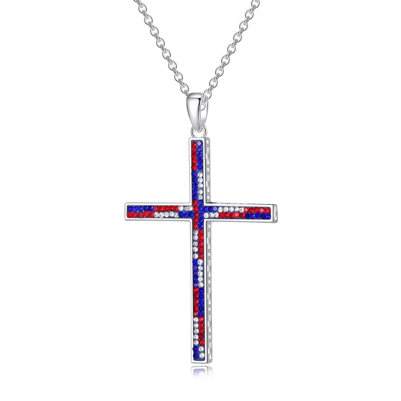 - ❤️🤍💙【CRYSTAL NECKLACE】Choose the meaningful religious cross necklace for you. Fashionable crystal necklace set with royal blue, fire red and clear crystal. These three colors stand for freedom democracy and human rights.