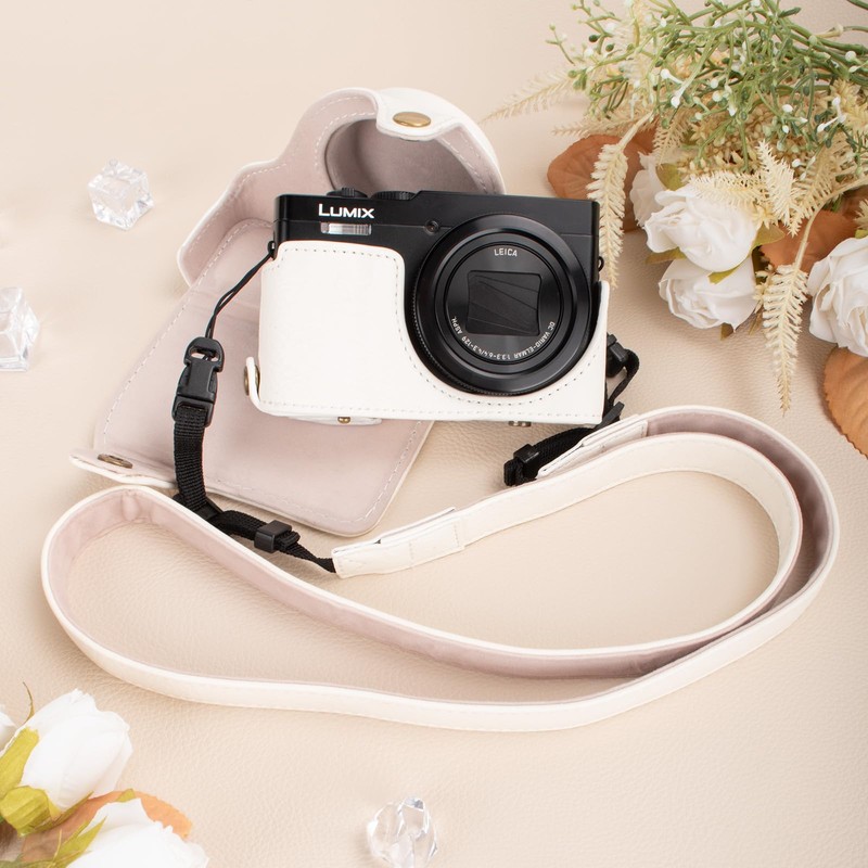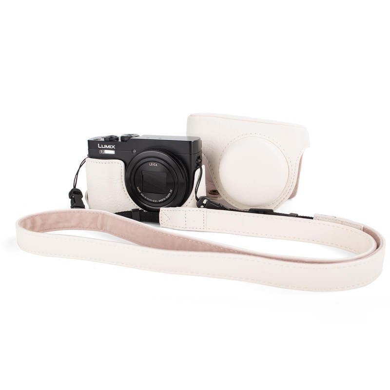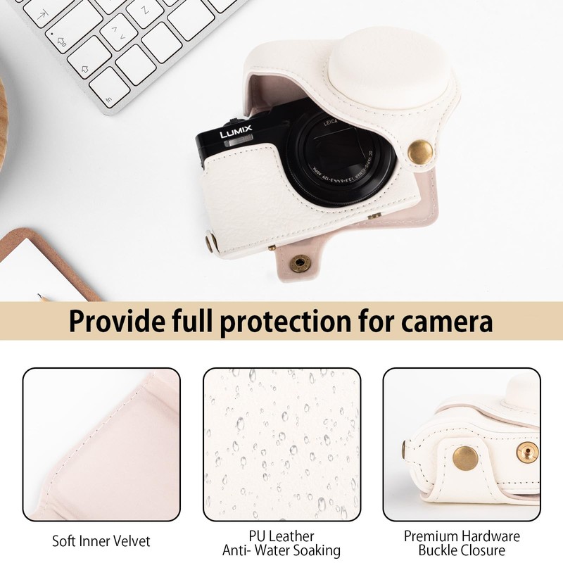 MUZIRI KINOKOO Case for Panasonic Lumix DC-ZS99 Digital Camera, PU Leather Protective Cover for Lumix ZS99, Detachable Carrying Case with Adjustable Shoulder Strap - White