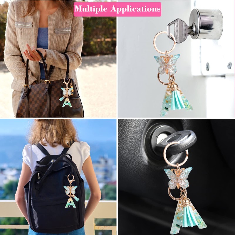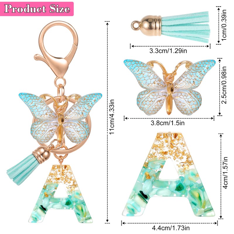 - Beautiful design: resin alphabet key ring contains gold foil with green gradient butterfly tassel pendant to meet your DIY personality decoration. You can also remove it to change the position of the pendant.