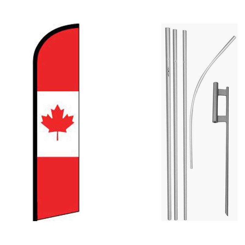 MWS Canada Red/White Windless Banner Flag & 16ft Flagpole Kit/Ground