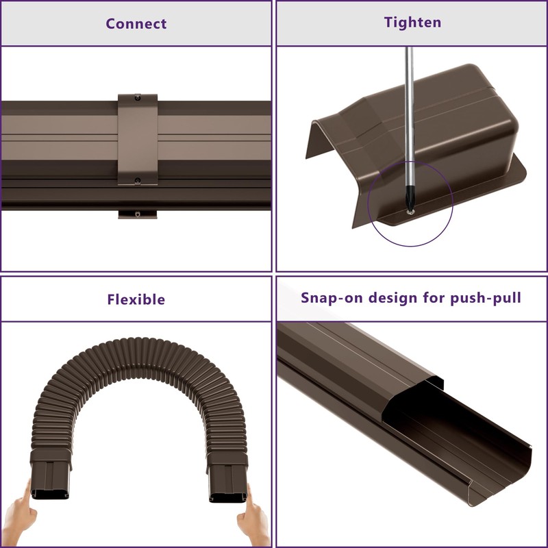 Mxclimate 4" 17Ft PVC Line Set Cover Kit for Mini Split and Central Air Conditioners,AC Heat Pump Systems,Decorative Tubing Pipe Covers,Brown