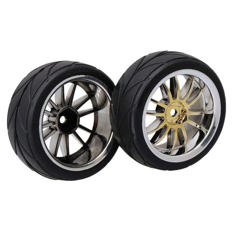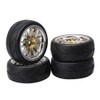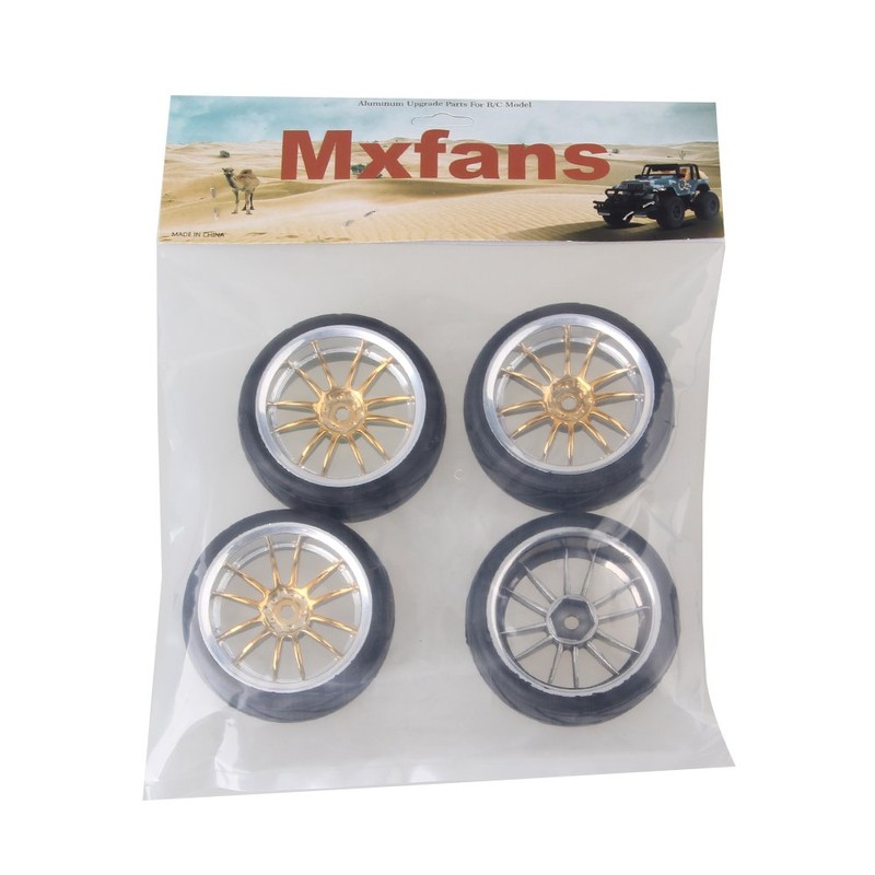 Mxfans 4pcs Gold Arrow Pattern Tires for RC1:10 On Road Racing Car 12 Chrome Wheels RC Wheels
