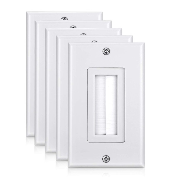 Mxtechnic Brush Wall Plate Decora Style, Cable Pass Through Insert for Wires, Single Gang Cable Access Strap, Wall Socket for HDTV, HDMI, Home Theater Systems (5 Pack, White)