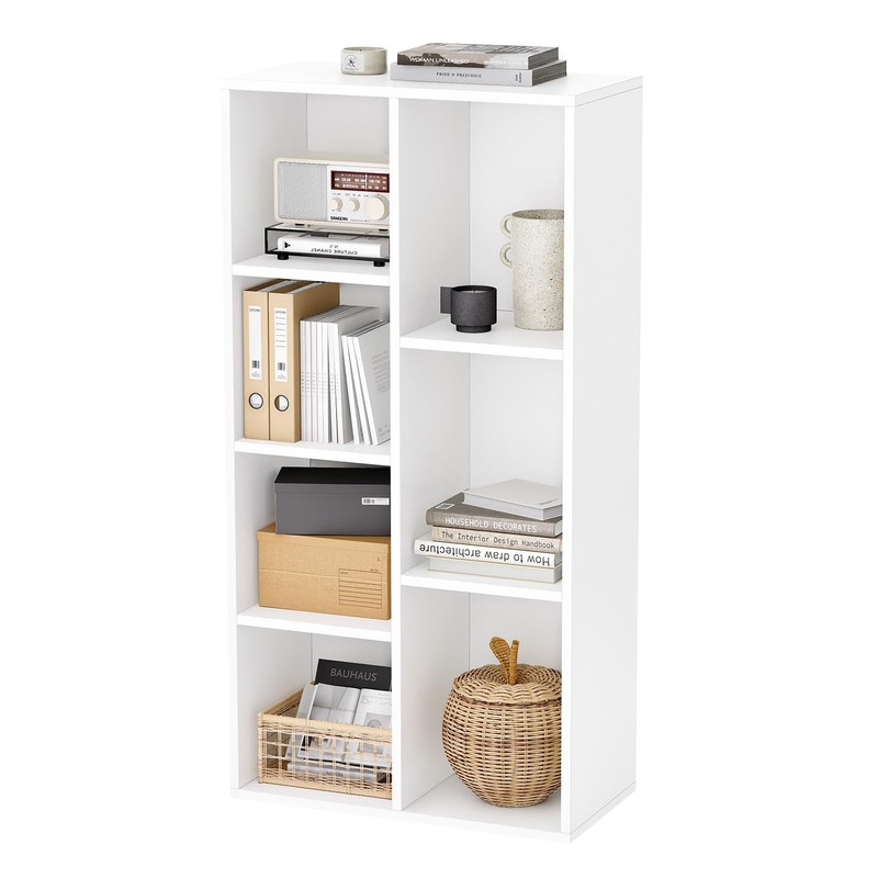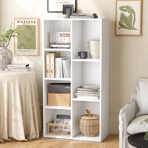 MXV 7-Cube Bookshelf, Wooden Cube Organizer and Display Shelf with Storage, Stackable Bookcase for Small Space, White Cube Shelf Easy to Match for Living Room, Bedroom and Office