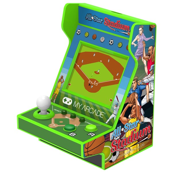 My Arcade All Star Stadium Pico Player- Fully Playable Portable Tiny Arcade Machine with 107 Retro Games, Toys for Kids, 2" Screen, Green, Small (DGUNL-4120)