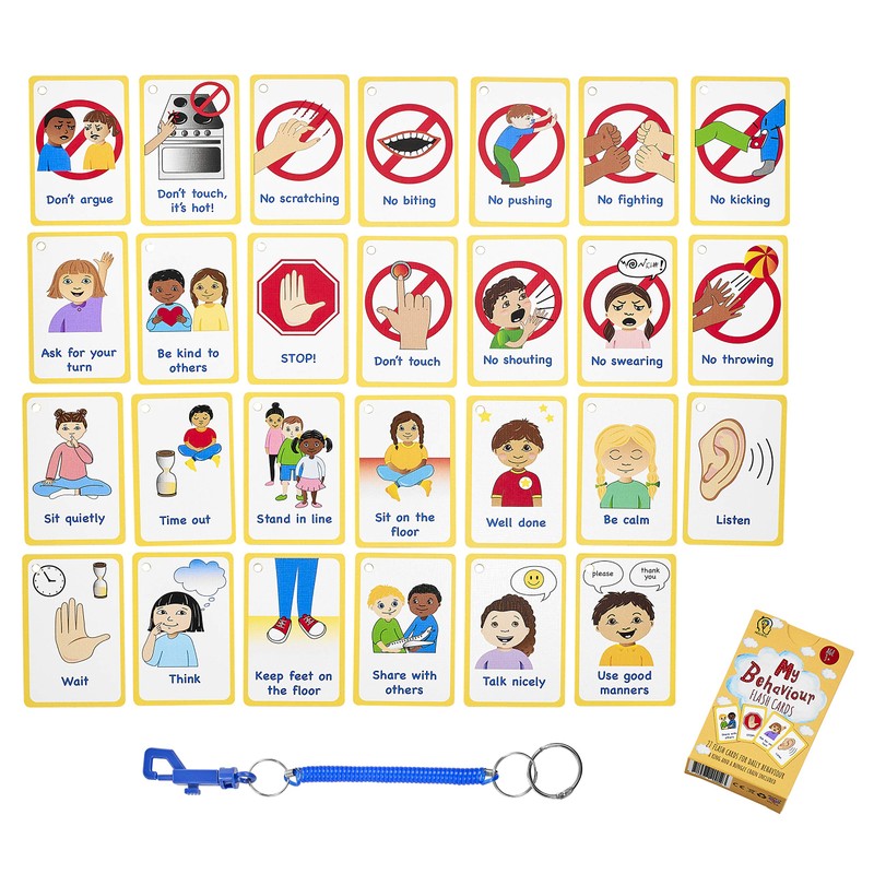 - 27 CARDS BEHAVIOUR THEME: 27 hand-drawn flashcards illustrating key ideas and items. Ideal for use with SEN needs such as Autism, Speech Delay and Selective Mutism. Can also be effective with young children, language learning and neurological diseases such as Alzheimer’s.