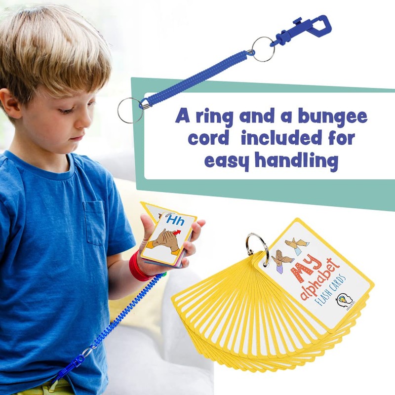 Amonev Presents our fun and educational BSL Alphabet flash cards set. Our British Sign Language Alphabet Flash cards were designed to build children minds, Our Flash Cards are a great for improving memory, motivating children and being a fun interactive tool to also build their confidence. Our BSL flash cards are used by parents, teachers and schools as they are great with visual aid for learning All our designs have input from professionals and are created by our wonderful team who delight in putting smiles of aww and wonder on children faces. Our My BSL Alphabet flash cards are made of high quality 320gsm card. Each pack of cards comes with 27 cards, a ring and a bungee chain. The cards are sized 5.5cm x 8.9cm / 55mm x89mm. We Love Happy Customers – We love happy children and happy customers. If by any reason you’re not happy with your Flashcards please feel free to return it and we will issue you a full refund.