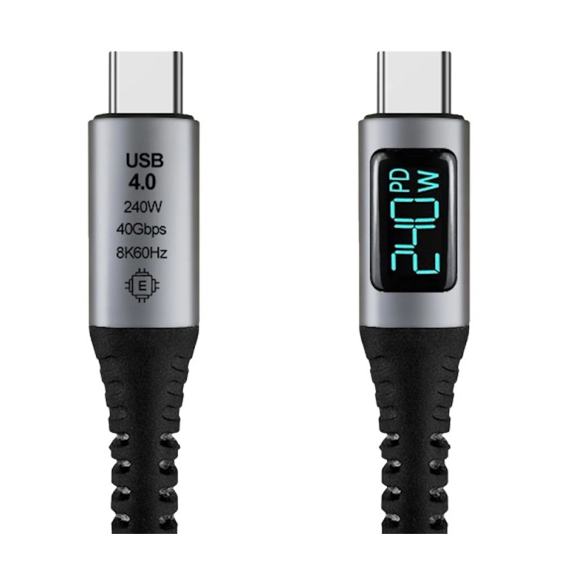 This is a GENUINE CERTIFIED USB4/Thunderbolt 4 cable, certified by intel capable of transmitting 8K@60Hz video resolution, 40Gbps, and the maximum allowed 240 Watts 5A/20V power supply. Clear LED display shows the power wattage that is connected, and if the PD (Power Display) capability is available.