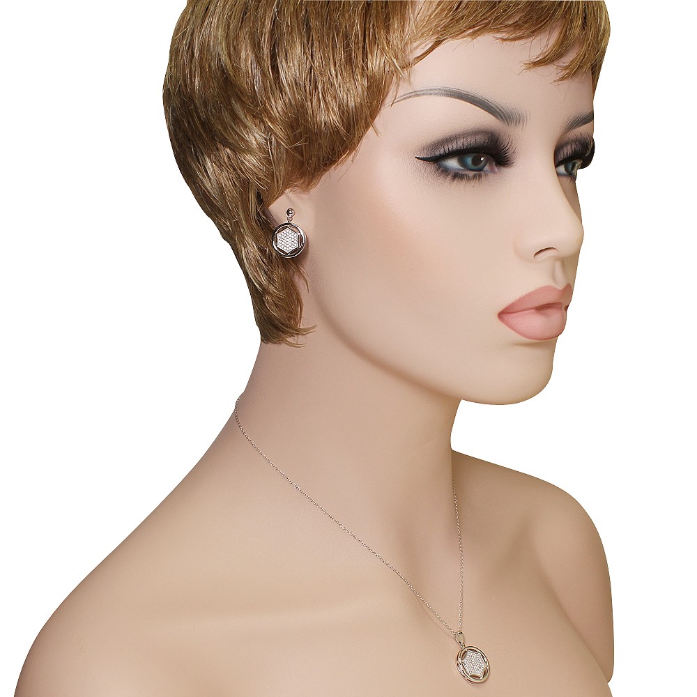 My Daily Styles 925 Sterling Silver White Clear CZ Pendant Drop Dangle Earrings Set