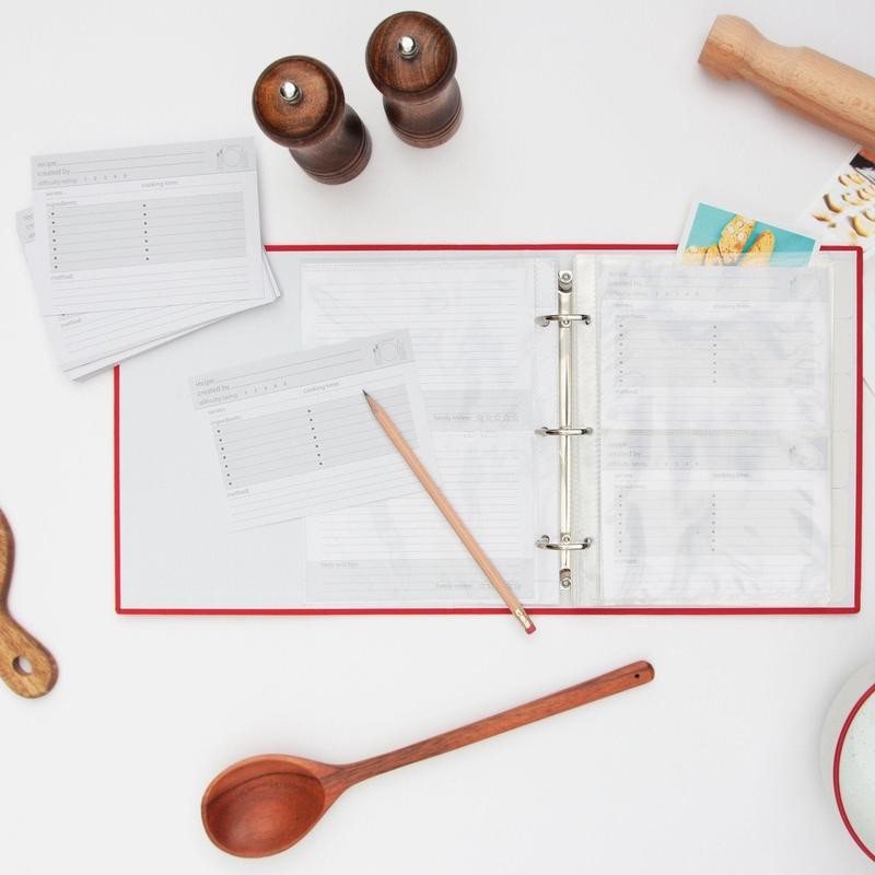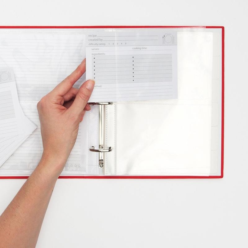 The cook book you write yourself. Create and collect all your family's favorite recipes in one place. Easily rearrange and order the recipe cards into sections - we like to sort our recipes by each chef in the house - Grandma's classics are everyone's favorite. Uncle Larry's famous breakfasts are perfect for Sunday mornings. As well as your own creations, collect magazine clippings and store them safely. Everything is organized, protected and kept clean from kitchen spills and sticky fingers.