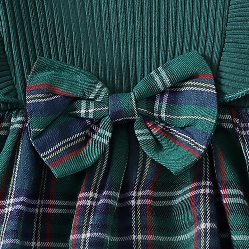 My First Christmas Baby Girl Outfit Newborn Velvet Ruffle Romper Dress Infant Bodysuit Cute Fall Winter Clothes (F Plaid Green,3-6 Months)