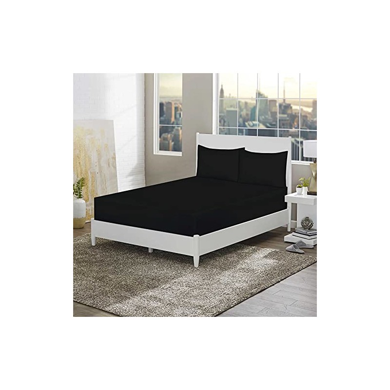 - Fitted Sheet With Perfect Deep Fit: The ultra-breathable, skin-friendly material is ideal for those with sensitive skin or anyone who enjoys a naturally silky surface while sleeping. Double Black elasticated fitted sheet (137cm x 190cm + 25cm deep) provides a neat look to your linens and smart head/foot labels aid easy bed-making.