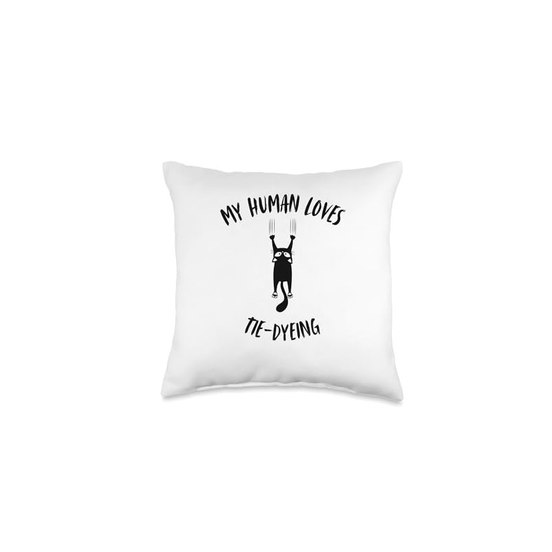 My Human Loves Tie-Dyeing - Cat Parent Hobby Lover Throw Pillow