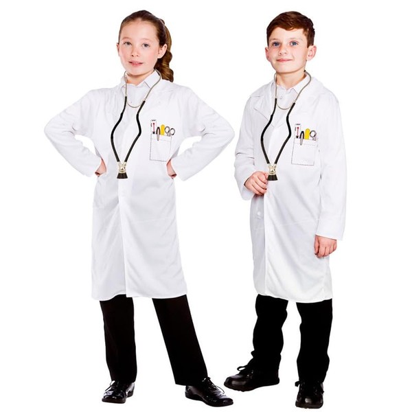 - DOCTORS COAT FOR KIDS: This kids' book day costume includes a white doctors coat with printed tools along with a realistic stethoscope to make their doctor play feel genuine and immersive.