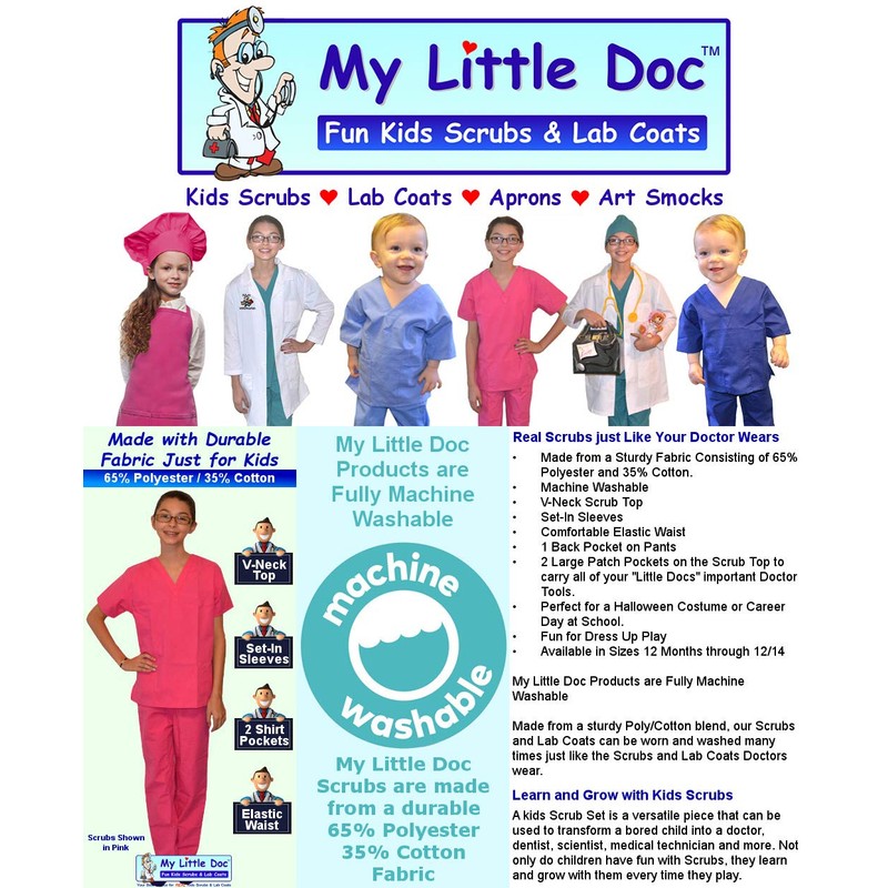 My Little Doc Custom Kids Scrubs Pink, Includes Embroidered Name, Size 7