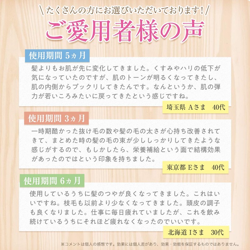 • All ingredient beer yeast | Millet extract powder | Zinc yeast | Collagen peptide (including gelatin) | Keratin hydrolyzes (keratin hydrolyze, dextrin) | Vegetable fermentation extract (weeds, turmers, lotus leaf, grain), dandelion Root, Reiki Turf, Ladle Virgin, Lizard leaves, Pyrant, Licorouse, Pine leaf, South Celestial leaves, Amidolo, Tornata, Maca, Tongkat ali, Pigtailon, Horror, Birchina, Mahan leaves, Gypsophila leaves, Fig leaves, Plywood. elephant, Enmei Grass, Morohair, Secho, Actosta Wrinkle, Gypsophila Leaves, Persimmon Leaves, Karin, Purple Blossom, Mulberry Leaves, Megri Tree, 7 Ginsent, Japanese Lupus, Matabi, Ebis Grass Seeds, Agaryx, Rooibos, Amura Seeds, Salassia. Cat's Claw V-, Plum plum, kuman, fig, mican, pineapple, apple
