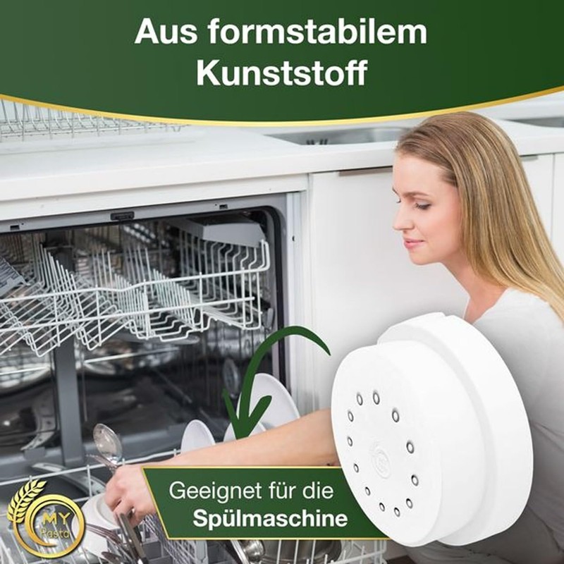 Preparation is simple: just select the matrix you want and place it in the machine. Choose the dough mould and add your ingredients. Press the start button. The dough is ready in just three minutes and your dough will start to come out as desired. Share this moment with your family and children and show them how to make simple, healthy and quick recipes. Strong and durable material. Made in a family business in Germany. Dishwasher safe.