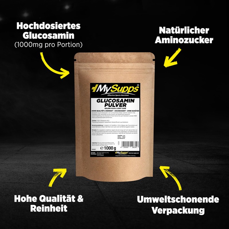 My Supps My Supps Glucosamin Pulver 1000g C 100?% reines Glucosamin-HCL C hochdosiert & ohne Zus?tze C Hydrochlorid fr t?gliche Erg?nzung C HCL-Pulver in Premiumqualit?t C Made in Germany