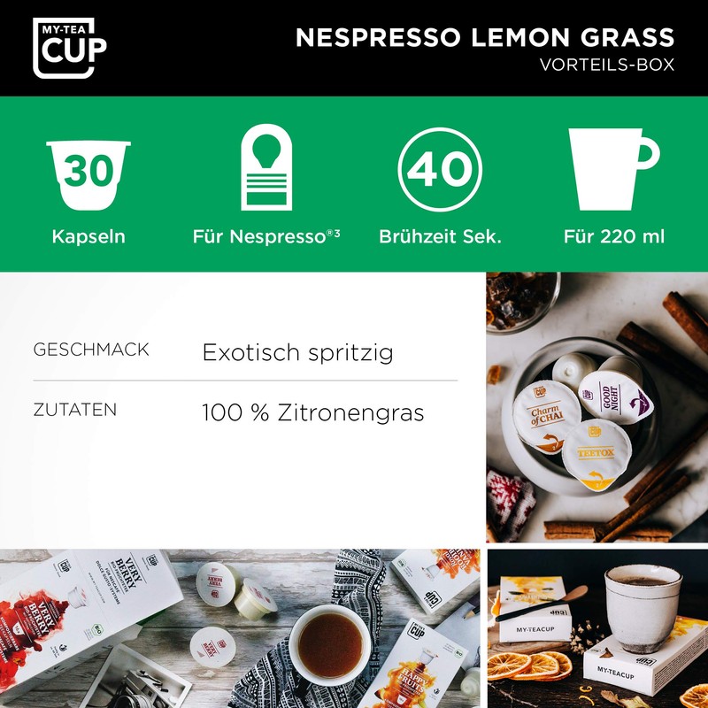 My Tea Cup - TEEKAPSELN LEMON GRASS 3 x 10 KAPSELN I BIO-Zitronengras-Tee (Kräutertee für Nespresso®³-Kapselmaschinen I 100% industriell kompostierbar & nachhaltige– 0% Alu…