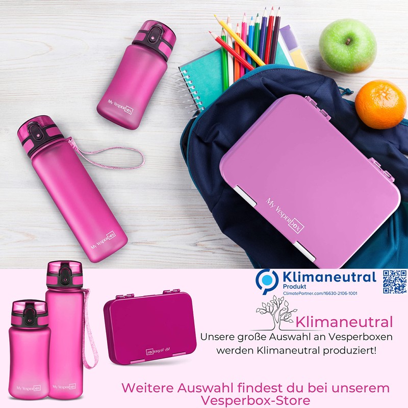 - Many possibilities: whether with a pop-up straw, fruit strainer, or just as it is, with the My Vesperbox drinking bottle, everything is possible. The water bottle also fits perfectly into most bicycle bottle holders.