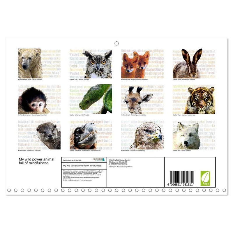 My wild power animal full of mindfulness (Monthly Wall Calendar 2026 16.5" x 23.4" (open)), CALVENDO 14 Month Calendar