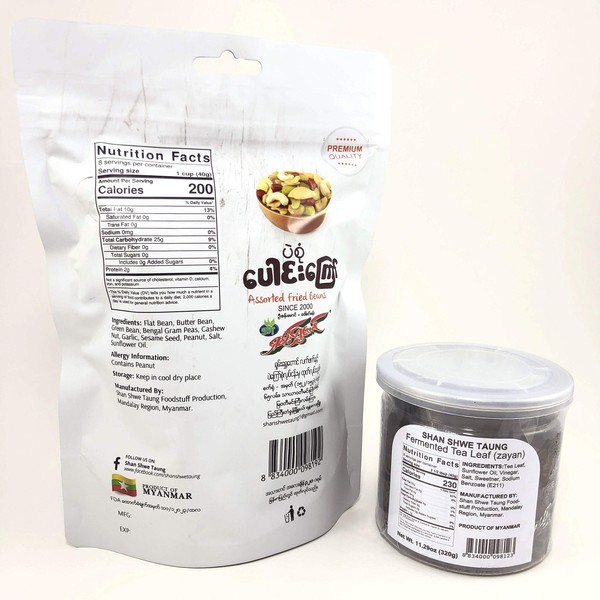 - Set Includes Fermented Tea Leaf (320g) Non Spicy and Assorted Fried Bean (320g). Total 640g.