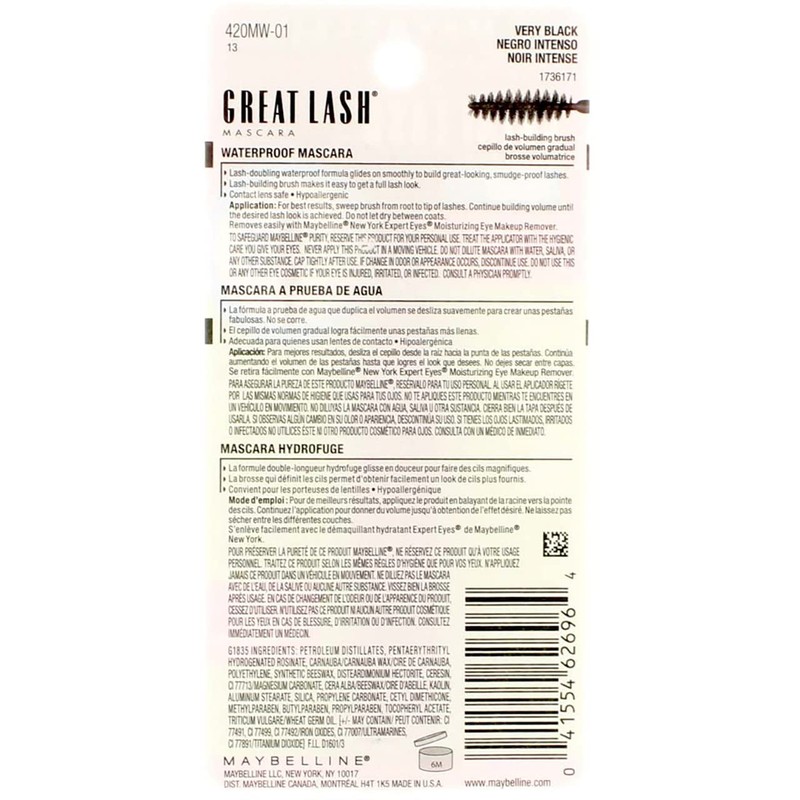 - The easily removable waterproof formula of Great Lash mascara comes off without any scrubbing or rubbing