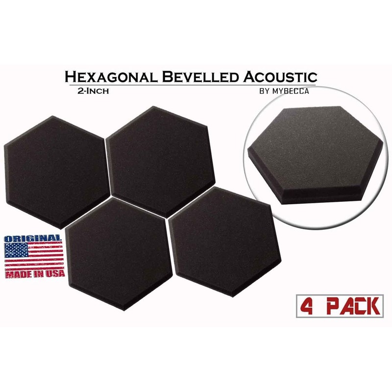 Mybecca 4 PACK Hexagon (Hexagonal) Acoustic foam Tiles Soundproofing Wall Panels 2 inches by 6 inches, Made in USA