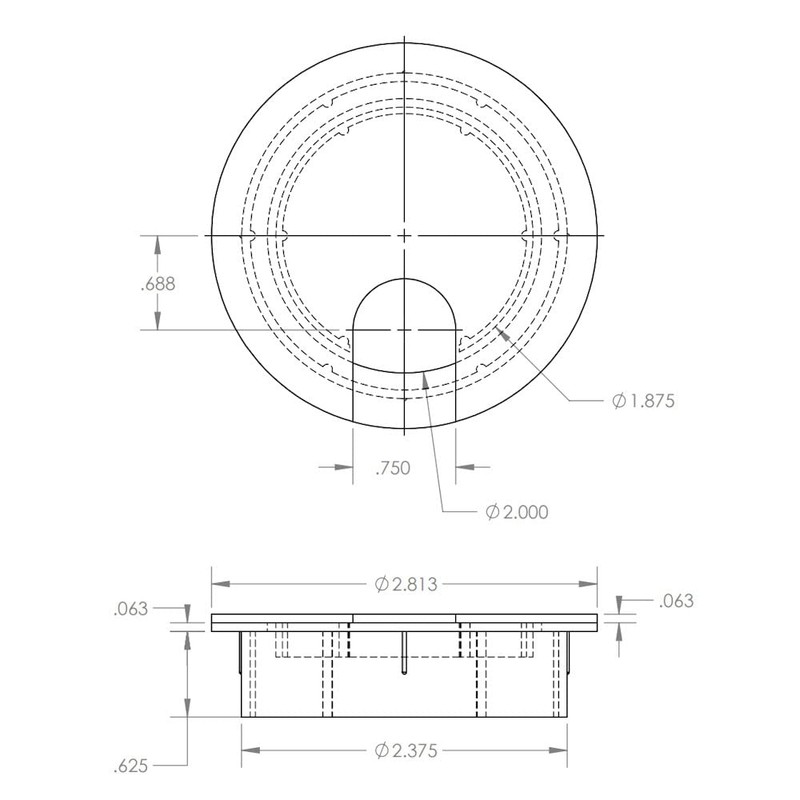 • Inside Usable Diameter: 2.10''. This is the usable INSIDE area to pass wires