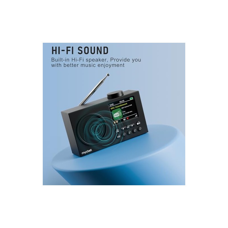 - DAB/DAB+ & FM Digital RadioMycket Portable DAB+ radio offers you crisp and clear audio quality you can enjoy your favourite radio stations wherever you go. DAB offers enhanced digital radio quality, and allows you to access a range of digital radio stations. The clear colour LCD screen lets you know exactly what you are listening to.