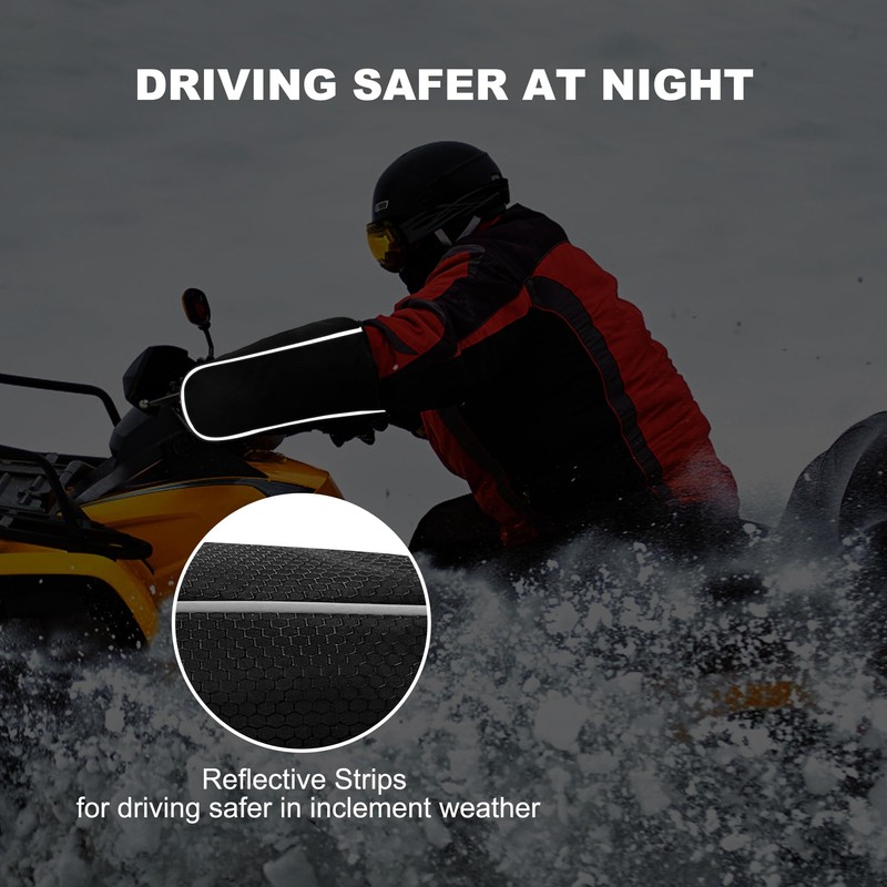 - NICE GIFT: ATV handlebar mittens are a practical accessory for enhancing comfort and safety during cold or adverse weather conditions, providing protection against wind, rain, snow, and mud while riding your ATV. The best gift for outdoor cross-country enthusiasts.