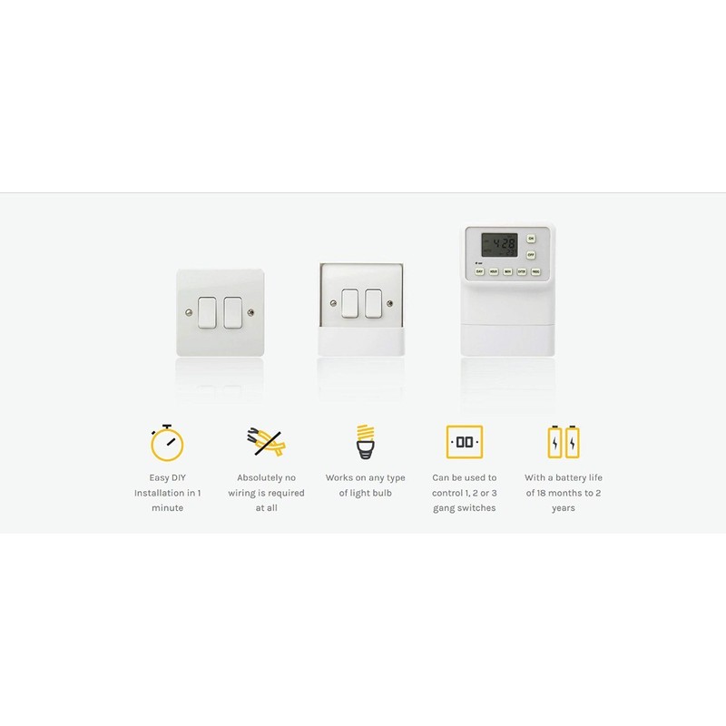 - A light timer that works with any type of light fitting or light bulb including energy saving bulbs, CFLS and LEDs