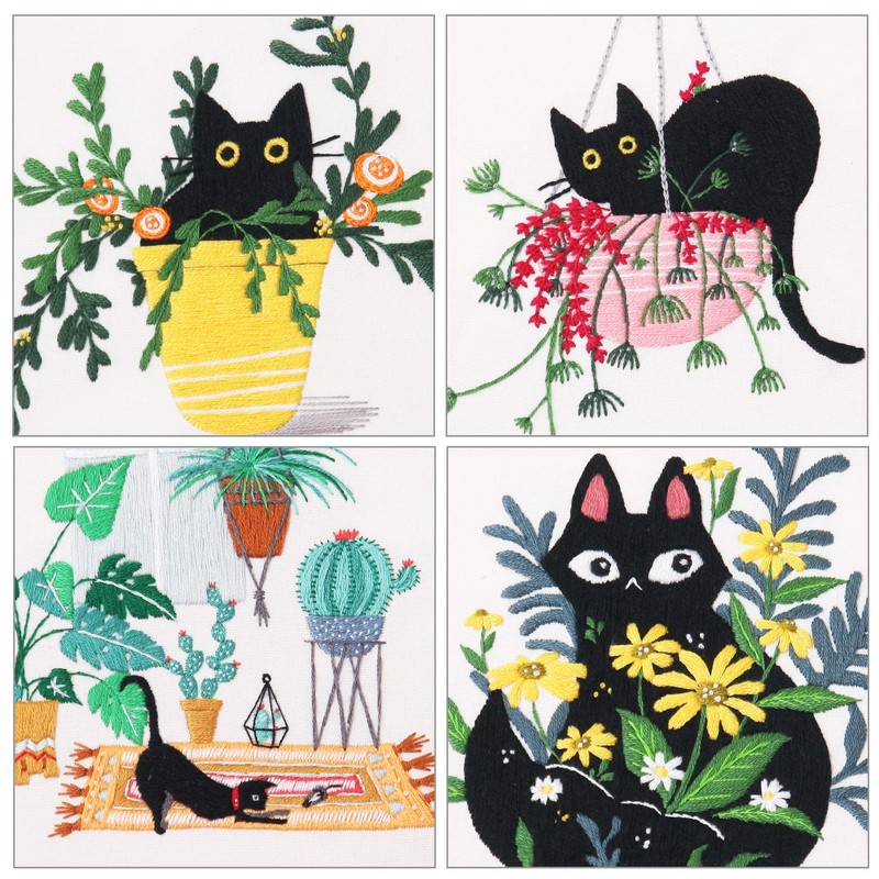 - 【Application】This embroidery kit has different cat and plant patterns, after the work is completed, it can be given as a gift to relatives and friends, or can be used as a decoration to hang in the living room or bedroom.