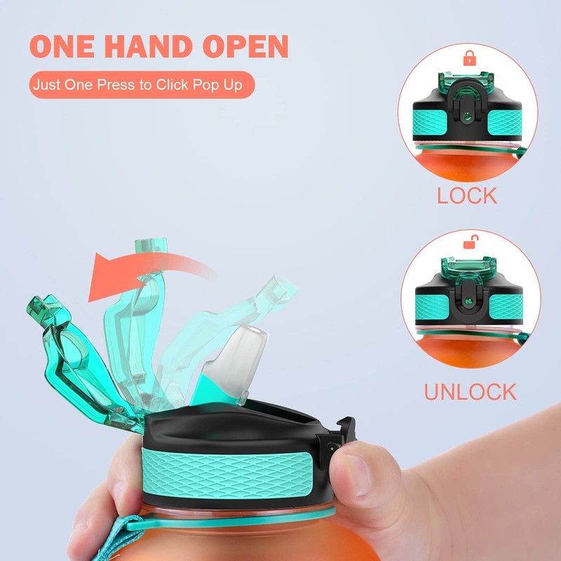- Portable, functional design: The flip-top lid features a secure closure and a soft, durable silicone spout that is dustproof and leak-proof. You can enjoy leak-proof drinking and fast water flow without lifting the bottle. The heavy-duty hand loop and non-slip grip makes it easier to take it anywhere. Perfect for hiking, camping, running, yoga or any other sport
