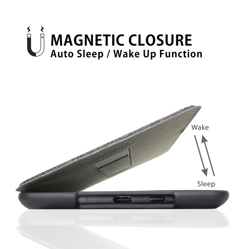 - SCHLAF / WACH FUNKTION - Durch einen schmalen Magnetstreifen in der Klapphülle schließt das Cover zuverlässig und unterstützt die automatische Schlaffunktion des E-Readers. Beim Schließen des Deckels wird das Pad in den Ruhezustand versetzt und beim Öffnen wieder eingeschaltet.