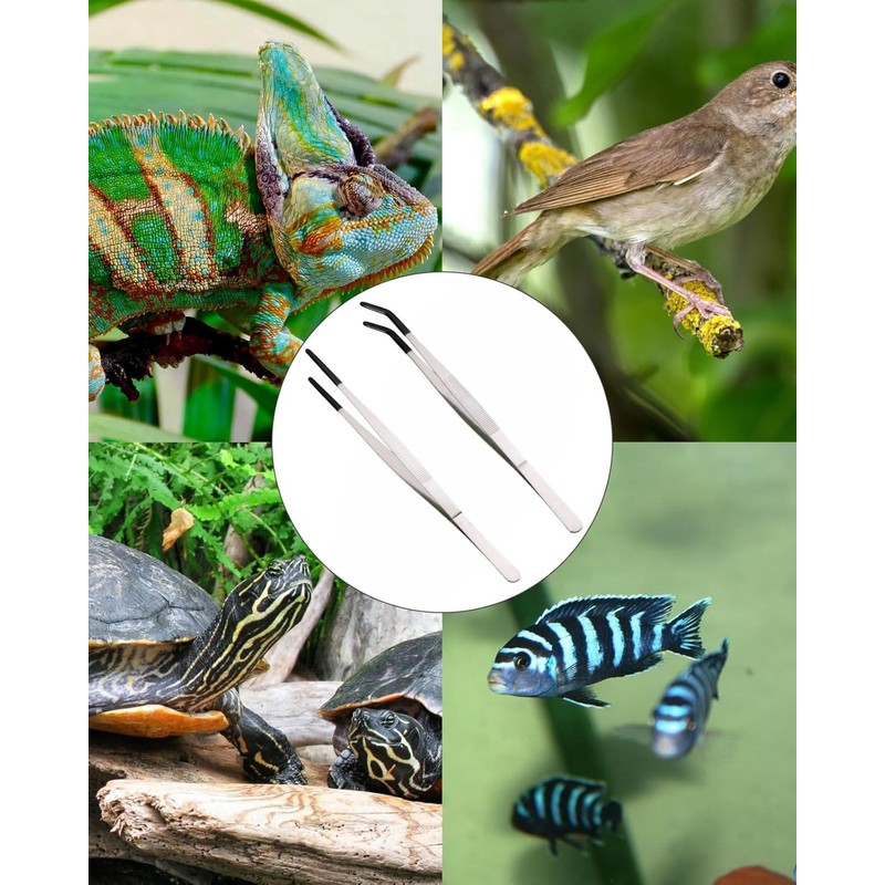 • Einzigartiges Design: Das vordere Ende des Bartagamen-Futterspenders hat eine Gummiabdeckung, sodass nicht so leicht Dinge herunterfallen und die Tiere sich nicht verletzen. Die lange Pinzette für Aquarien ist so konzipiert, dass sie Arbeit spart. Sie hat Handkurven, ist einfach und bequem zu bedienen und das ergonomische Design lässt Sie nicht ermüden