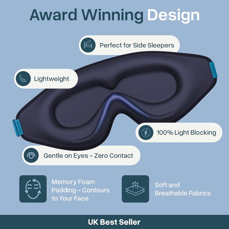 { We Mean 100% Blackout Eye Mask } - Enjoy uninterrupted sleep with our blackout eye mask, designed to contour to all nose shapes and block all light. Perfect for side sleepers, shift workers, and frequent travelers. Our blackout sleep eye mask ensures total darkness for a restful sleep.