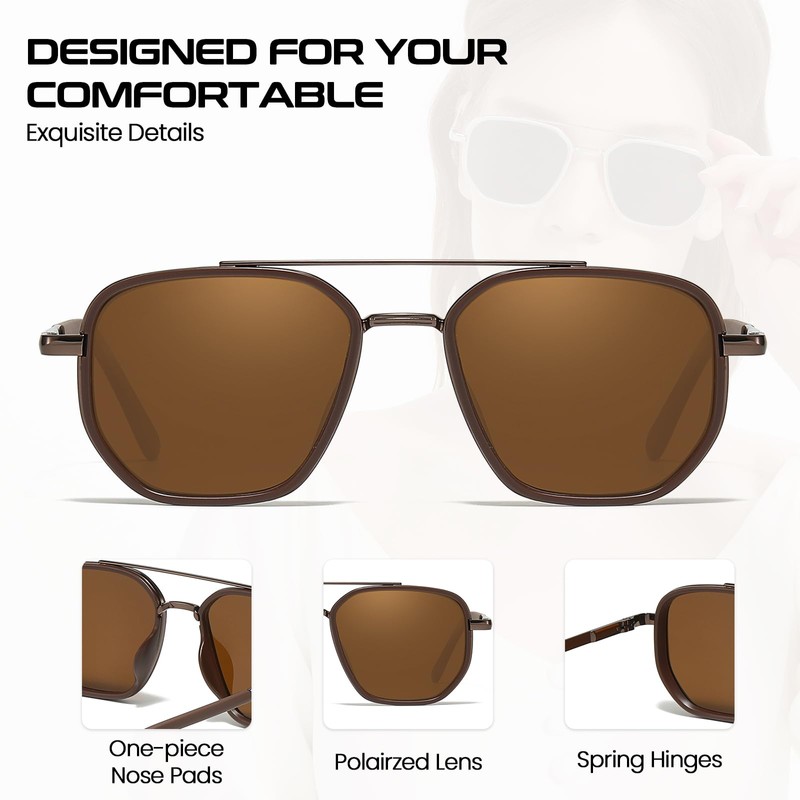 - Stylish Square Frame with Double Bridge – A modern, bold look with enhanced stability, distributing weight evenly for a comfortable, secure fit.