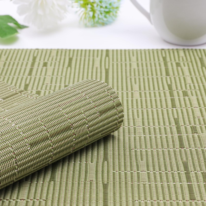 Myir JUN Place Mats, Table Mats Set of 8 Indoor Placemats Washable Non-Slip Heatproof Woven Placemats for Dining Table Fabric Place Mat PVC (Green, Set of 8)