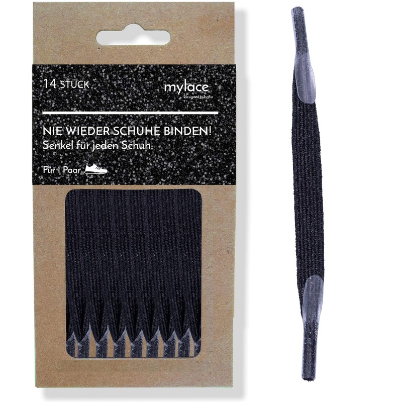 MYLACE - Shoelaces Without Tying, Flexible Hook-on Laces - Many Colours - Black -