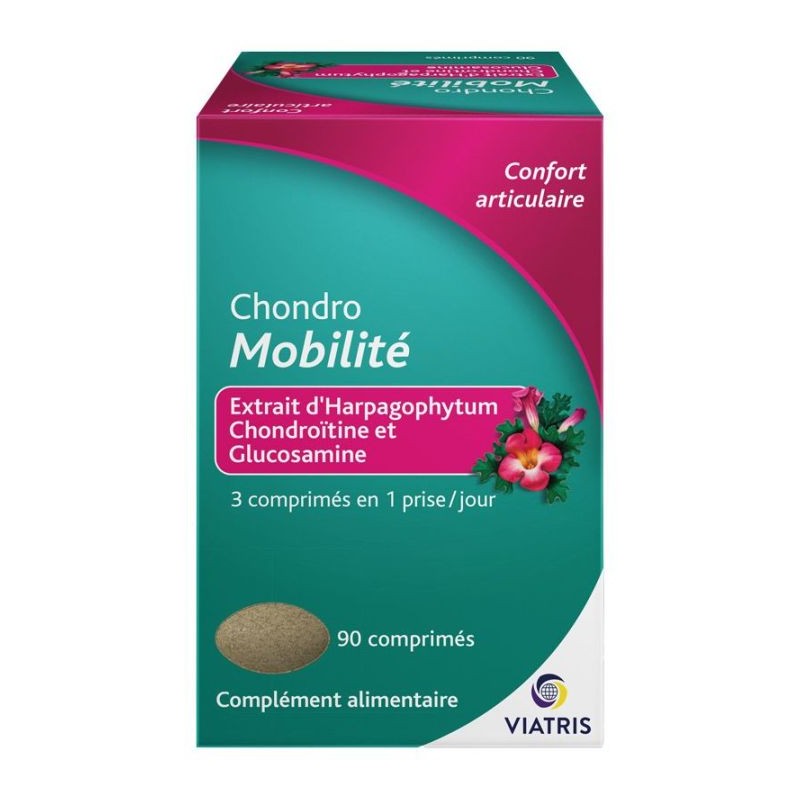 Viatris Chondro Mobility 90 tablets is a food supplement intended for maintaining normal joint function . The synergy of active ingredients contained in Chondro Mobilité contributes to the preservation of capital and bone cartilage as well as joint flexibility and comfort.