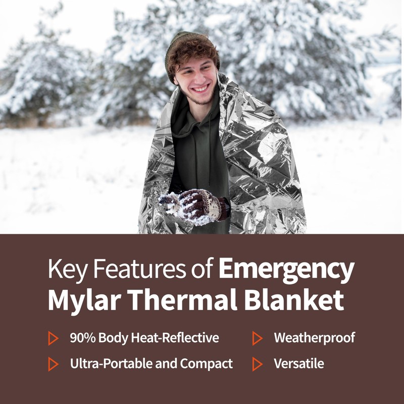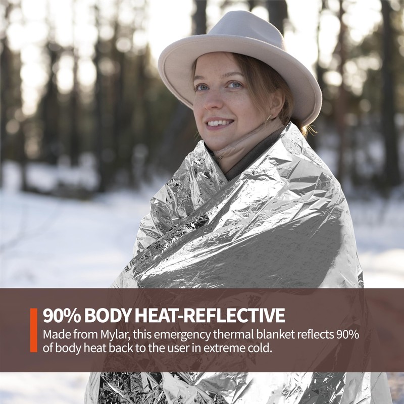 - 90% Heat Reflects: Emergency survival blanket designed to retain up to 90% of your body heat, preventing hypothermia
