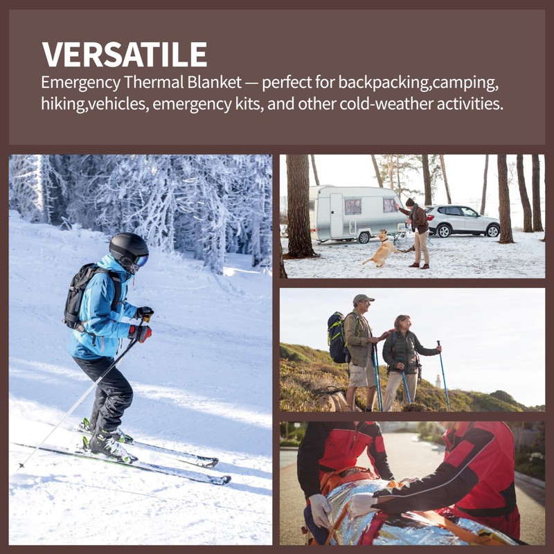 - Multi-Purpose Survival Blankets: Perfect for backpacking, camping, hiking, vehicles, emergency kits, and other cold-weather activities