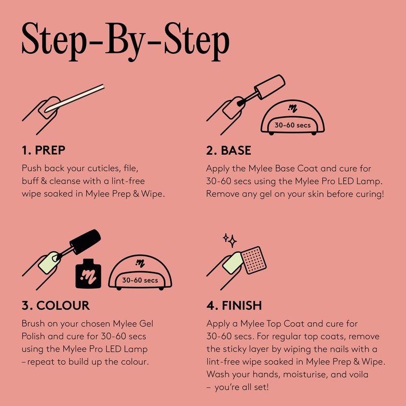 - Makelloses System – Unsere Mylee Base Coats und Mylee Top Coats eignen sich perfekt, um die Haltbarkeit Deiner Kreationen zu verlängern – einfach ein unschlagbares Gelnagellack Duo! Trage es wie angewiesen auf und lasse es unter einer LED- oder UV-Lampe aushärten. Beachte, dass aufgrund von Qualitätsunterschieden zwischen verschiedenen Monitoren die Farbe auf Deinem Bildschirm vom tatsächlichen Produkt abweichen kann