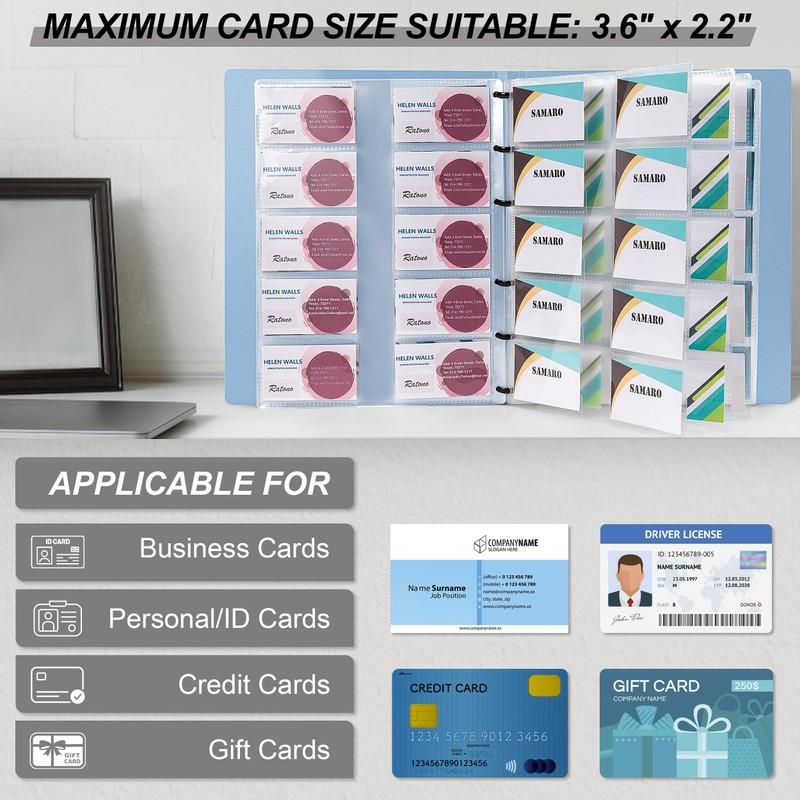 - Multi-purpose: Business card organizer can not only hold name cards, your credit cards, membership cards, shopper cards, gift cards, ID cards and personal cards can be protected well