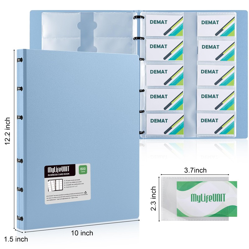 MyLifeUNIT Business Card Book, Name Card Holder Book with 600 Business Cards Capacity, Credit Card Book File Storage (Light Blue)