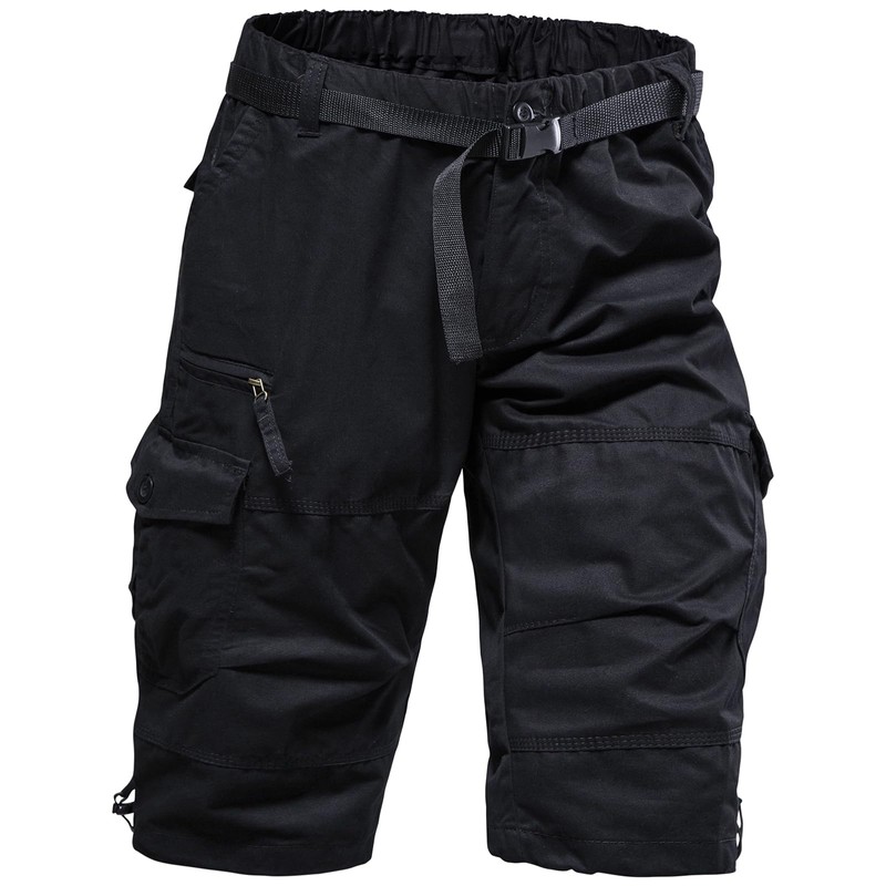 Mylldey Men's Cargo Shorts 3/4 Relaxed Fit Mens Running Shorts 7 Pockets Elastic Waist Cotton Hiking Shorts (Black, XL)