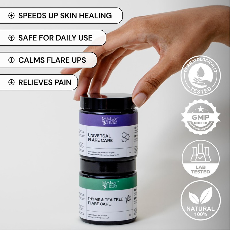 MyMagicHealer Complete Flare Care | Universal Flare Care & Thyme & Tea Tree Flare Care | Dual Relief for Skin Flare-Ups, Pimples, Acne, Boils, HS, Abscesses & More (2 x 4oz)